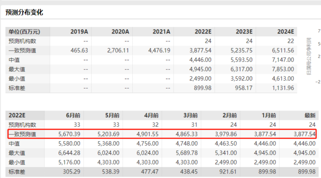 韋爾股份此份業(yè)績預告超出了市場預期。據統(tǒng)計,最近兩個月有24家機構對公司2022年業(yè)績進行了預測,一致預測值為38.77億元,最低值也有24.99億元。