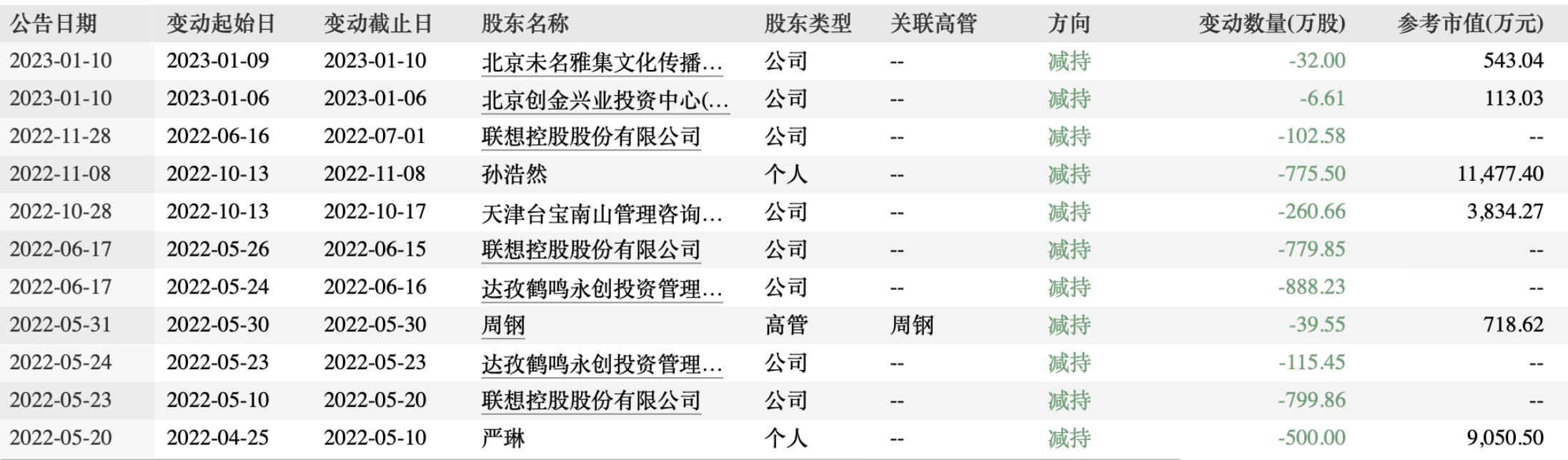 值得注意的是,2022年年底,孫浩然剛剛完成了一筆大額減持。
