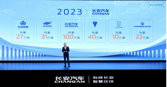 據(jù)董事長朱華榮透露,2023年長安汽車集團(tuán)銷售目標(biāo)為280萬輛,其中長安汽車100萬輛,長安歐尚31萬輛,深藍(lán)40萬輛,阿維塔10萬輛,長安凱程27萬輛,海外22萬輛。這一目標(biāo)在給公司一定壓力和挑戰(zhàn)的同時,也將促使長安汽車奮勇向前,一定程度上鎖定了未來業(yè)績增長幅度,為不確定的資本市場市場增加了確定性。