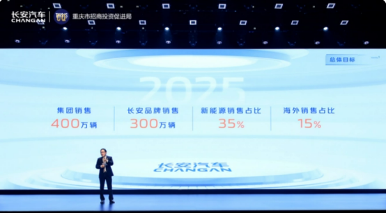 而在近日召開的長安汽車全球伙伴們大上,董事長朱華榮又“官宣”了公司未來幾年的發(fā)展規(guī)劃:到2025年,力爭實(shí)現(xiàn)長安汽車集團(tuán)銷售400萬輛,其中,長安品牌300萬輛,新能源銷售占比35%,海外銷售占比15%;到2030年,力爭實(shí)現(xiàn)集團(tuán)銷售500萬輛,其中,長安品牌400萬輛,新能源銷售占比60%以上,海外銷售占比30%。