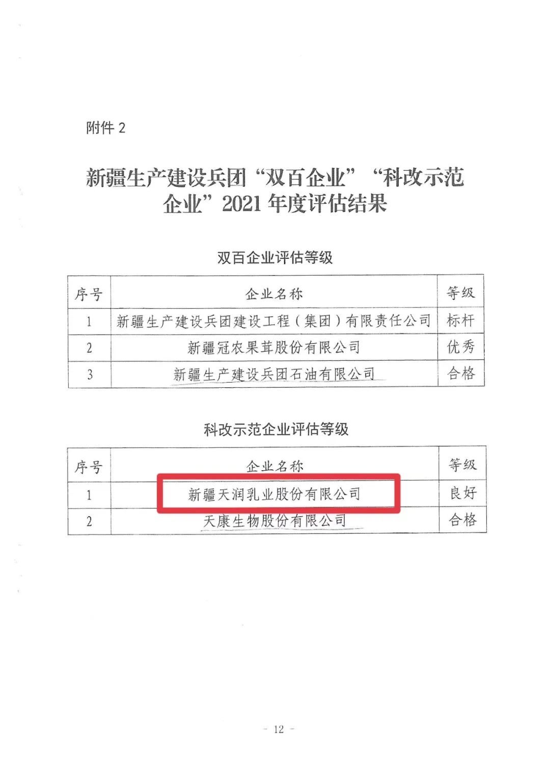 近日,兵團(tuán)國(guó)資委轉(zhuǎn)發(fā)國(guó)務(wù)院國(guó)有企業(yè)改革領(lǐng)導(dǎo)小組辦公室對(duì)全國(guó)“雙百企業(yè)”“科改示范企業(yè)”2021年度評(píng)估結(jié)果,新疆天潤(rùn)乳業(yè)(600419)股份有限公司(以下簡(jiǎn)稱“天潤(rùn)乳業(yè)”)被評(píng)為良好“科改示范企業(yè)”。