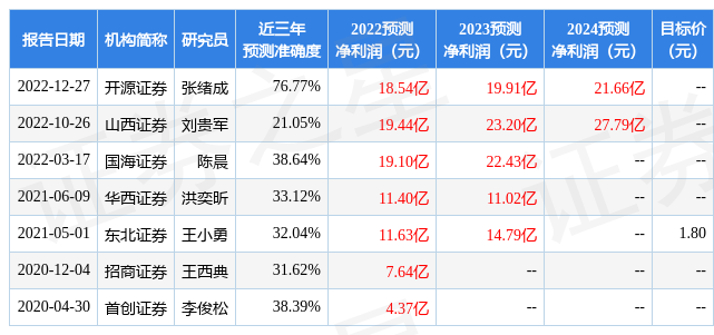 數(shù)據(jù)中心根據(jù)近三年發(fā)布的研報(bào)數(shù)據(jù)計(jì)算,開(kāi)源證券張緒成研究員團(tuán)隊(duì)對(duì)該股研究較為深入,近三年預(yù)測(cè)準(zhǔn)確度均值為76.77%,其預(yù)測(cè)2022年度歸屬凈利潤(rùn)為盈利18.54億,根據(jù)現(xiàn)價(jià)換算的預(yù)測(cè)PE為19.62。