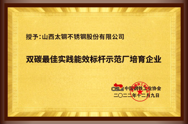 近日,在鋼鐵行業(yè)能效標(biāo)桿三年行動(dòng)方案現(xiàn)場(chǎng)啟動(dòng)會(huì)上,有21家鋼企首批被授予“雙碳最佳實(shí)踐能效標(biāo)桿示范廠培育企業(yè)”標(biāo)牌,山西太鋼不銹(000825)鋼股份有限公司名列其中。