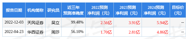 以下是詳細(xì)的盈利預(yù)測信息: