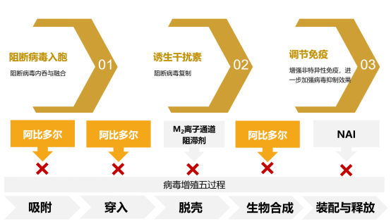 鹽酸阿比多爾片作為新一代血凝素抑制劑,具有阻斷病毒入胞、誘生干擾素、調(diào)節(jié)免疫三重作用機制。能夠介入病毒增殖早期階段,更加符合早診、早治原則,已被列入國家衛(wèi)健委《流行性感冒診療方案》推薦抗流感病毒產(chǎn)品。同時阿比多爾在臨床使用中尚未見耐藥報告,更適合流感的大規(guī)模防治。