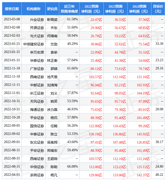 最新盈利預(yù)測(cè)明細(xì)如下:
