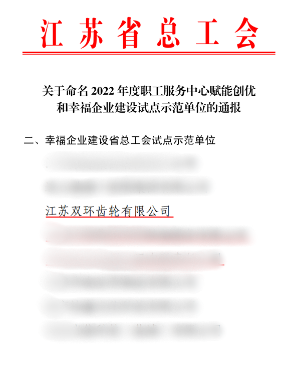 喜報(bào)!江蘇雙環(huán)入選江蘇省第一批“幸福企業(yè)試點(diǎn)單位”
