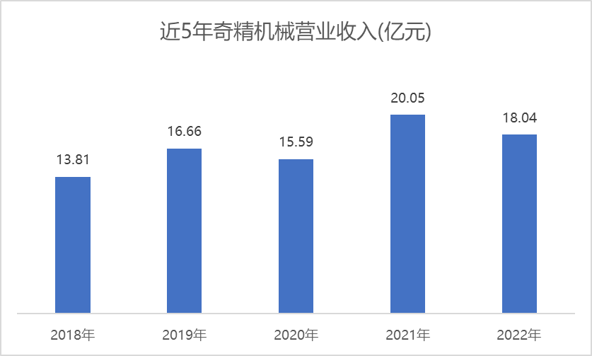 將時(shí)間線拉長(zhǎng),近5年,奇精機(jī)械營(yíng)收保持增長(zhǎng)態(tài)勢(shì),2021年首次突破20億元,2022年?duì)I收同比下降也與2021年的高基數(shù)有關(guān)。