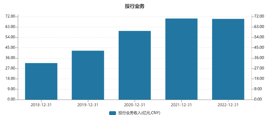 此外,中資美元債承銷也穩(wěn)居券商第一。整體數(shù)據(jù)顯示,2022年中金公司投行業(yè)務(wù)收入約70.06億元,較2021年的70.36億元,微微減少3000萬元,拉長時間來看,營收仍然處于高位,業(yè)務(wù)發(fā)展依然保持穩(wěn)健。
