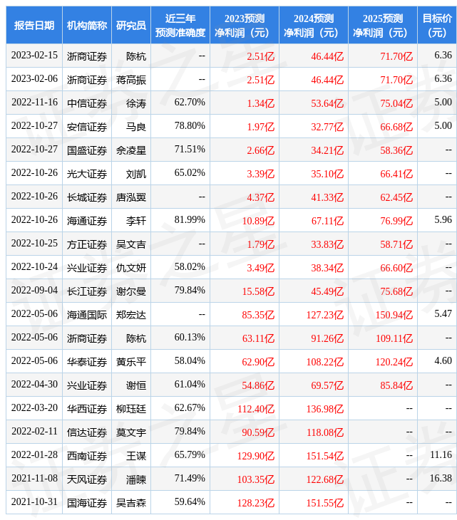 最新盈利預(yù)測(cè)明細(xì)如下: