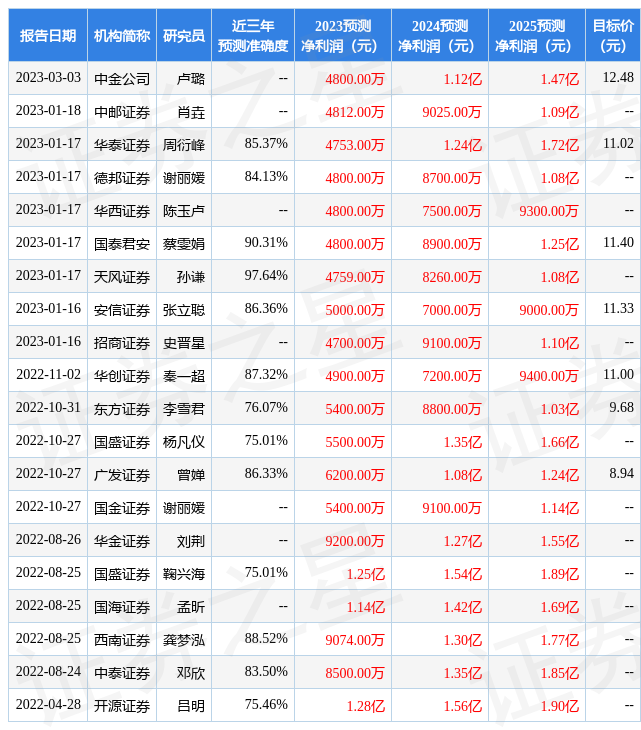 最新盈利預(yù)測明細如下: