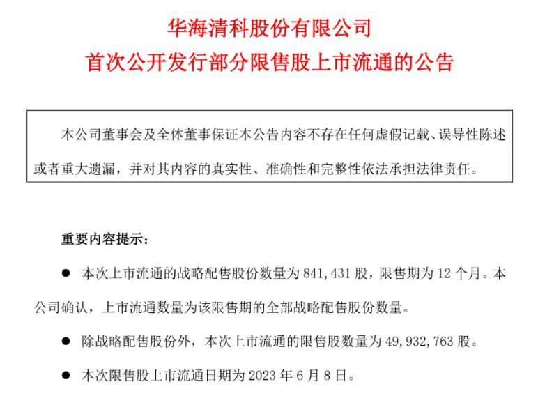 具體來看,數(shù)據(jù)顯示,華海清科6月8日將解禁5077.42萬股,為首發(fā)原股東限售股份和首發(fā)戰(zhàn)略配售股份,占公司股本總數(shù)的47.6%。