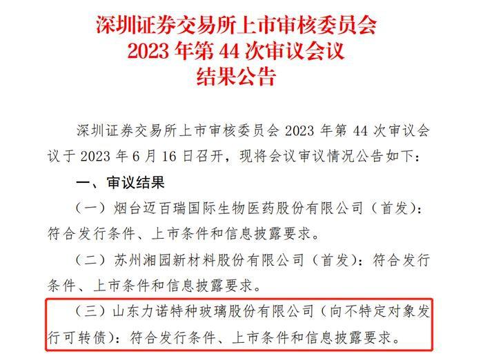 6月16日,山東力諾特種玻璃股份有限公司(股票代碼:301188,股票簡(jiǎn)稱"力諾特玻(301188)”)可轉(zhuǎn)債發(fā)行申請(qǐng)成功過會(huì)。