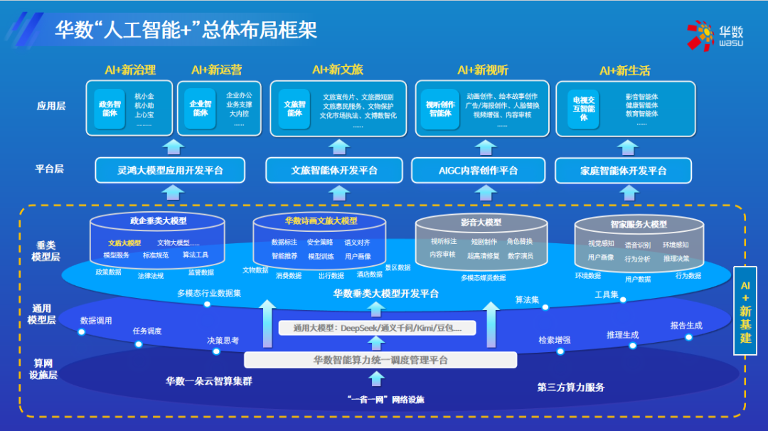 華數(shù)此次成功牽頭和參與以上多項“尖兵”項目,其核心基礎(chǔ)在于前瞻性地在“人工智能+”與“視聽+文旅”領(lǐng)域進(jìn)行了戰(zhàn)略布局、技術(shù)攻關(guān)與實踐積累。近年來,華數(shù)始終堅持“文化+科技”的融合發(fā)展路徑,將實施“人工智能+”戰(zhàn)略作為驅(qū)動企業(yè)轉(zhuǎn)型升級的關(guān)鍵抓手,全面推進(jìn)數(shù)智化發(fā)展,取得了系列標(biāo)志性成果。